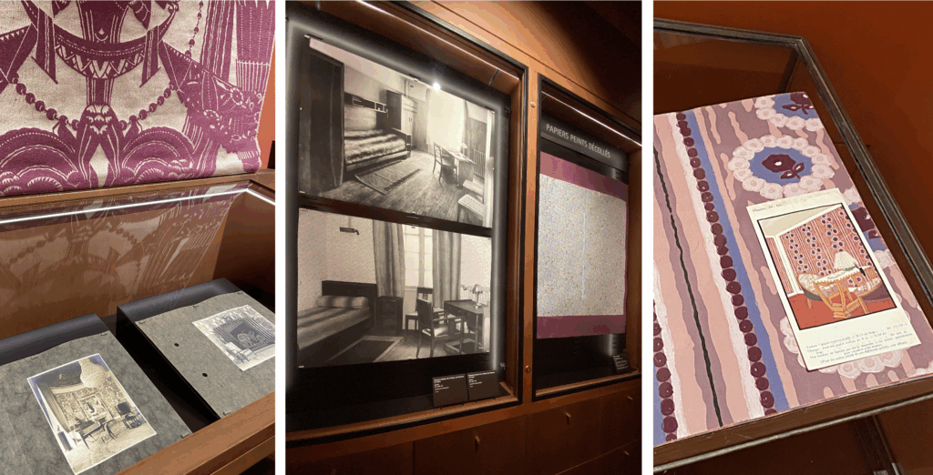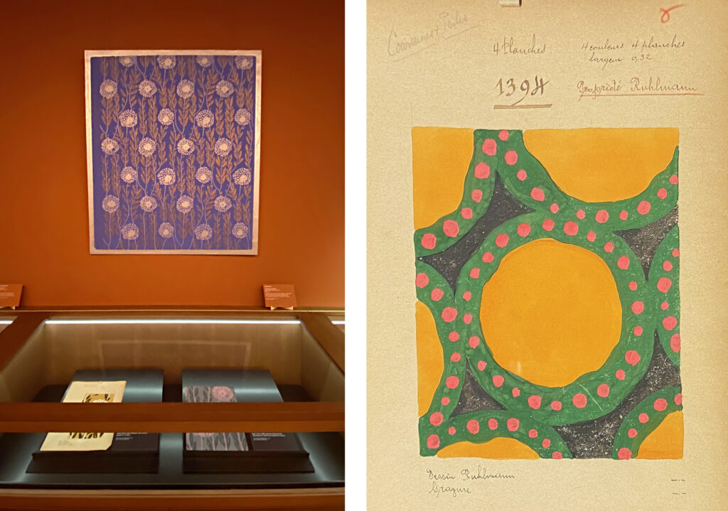 Ruhlmann är kanske mest känd för sina exklusiva möbelkreationer men här är det istället andra aspekter av hans skapande som fått ta plats och lyfts fram. Tapeterna och textilierna, de som ofta agerar bakgrund, fick här träda fram och spela en av huvudrollerna i det skådespel som art deco-perioden bjuder på. Museet nöjde sig inte med att visa hans skapelser som isolerade föremål, utan valde att arrangera dem i sammanhang som gav inblick i arbetsprocessen, med skisser, eller hur de en gång i tiden var tänkta att upplevas i en sammanhängande miljö, med fotografier och illustrationer.