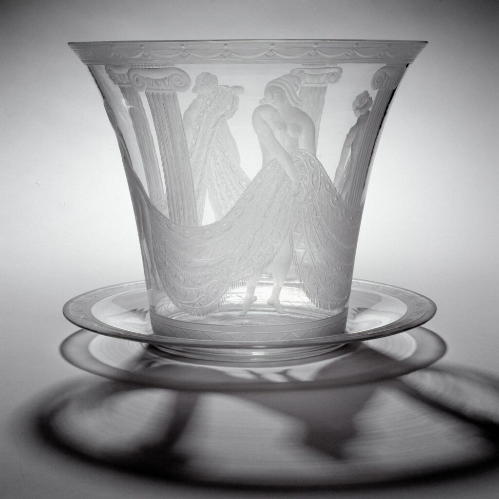Fig 12. Skål med fat Draperiskålen ritad av Edward Hald och utförd av Orrefors. NMK 21/1920. Foto: Nationalmuseum.