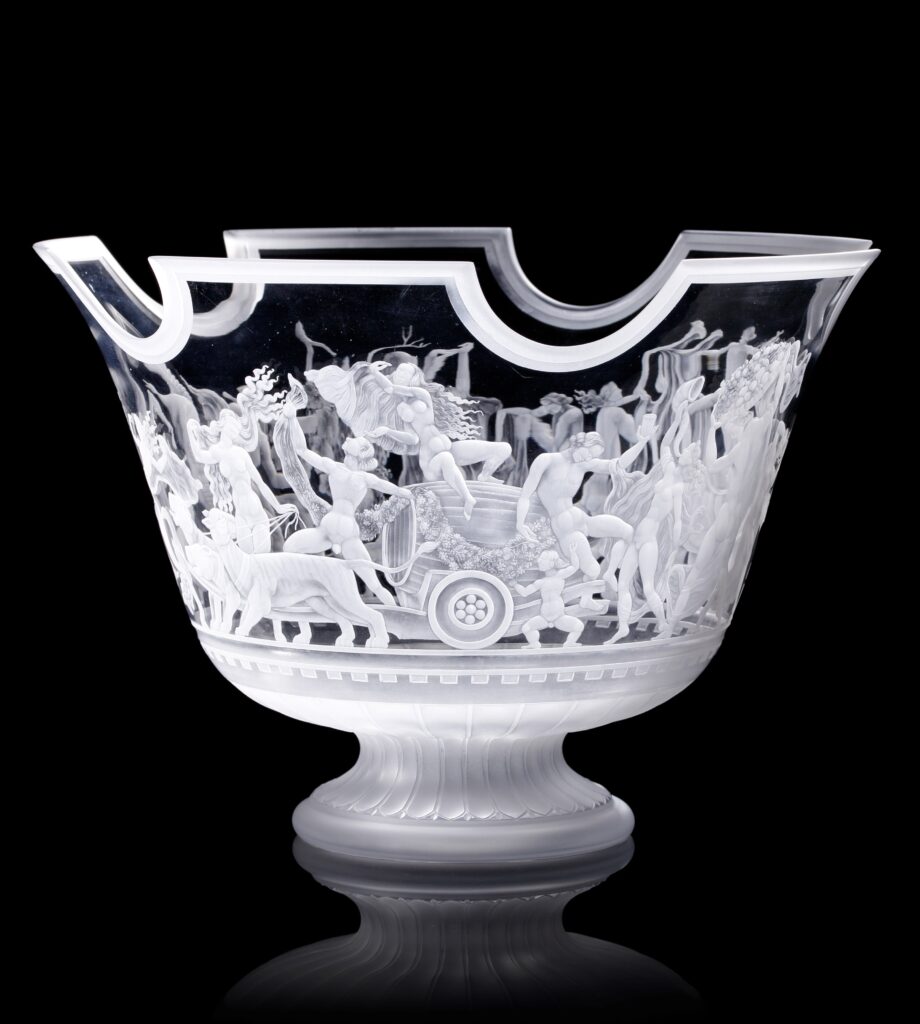 Fig 13. Skål på fot Bacchuståget ritad av Simon Gate och utförd av Orrefors glasbruk. OF 0062. Foto: Jörgen Ludwigsson / Kulturparken Småland AB.