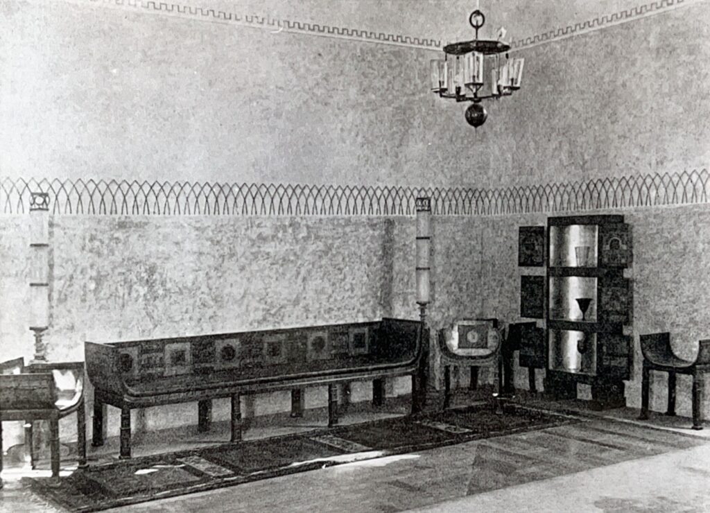 Fig 5. Interiör från svenska paviljongen med Carl Malmstens möblemang. Publicerad i Svenska Slöjdföreningens tidskrift (1925), s 65. Foto: Svenska Slöjdföreningen.