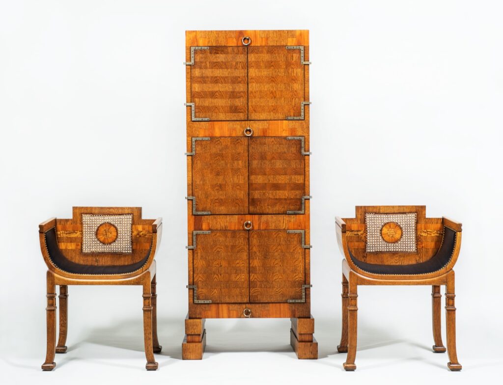 Fig 7. Skåp och karmstolar ritade av Carl Hörvik, Nordiska Kompaniets verkstäder. Id 139541. NMK 91/2015. Foto: Nationalmuseum.